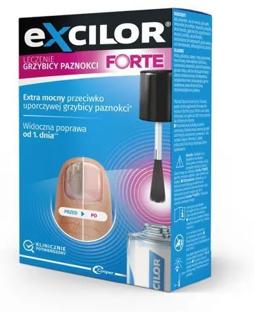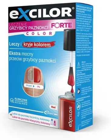 Excilor Forte Color to innowacyjny lakier, który nie tylko leczy grzybicę paznokci, ale także natychmiast maskuje nieestetyczne zmiany. Dzięki niemu zahamujesz rozwój infekcji, wspomożesz odrost zdrowych paznokci i zyskasz pewność siebie. Nasi klienci chwalą go za skuteczność, szybki efekt estetyczny i łatwość stosowania. Dołącz do zadowolonych użytkowników!