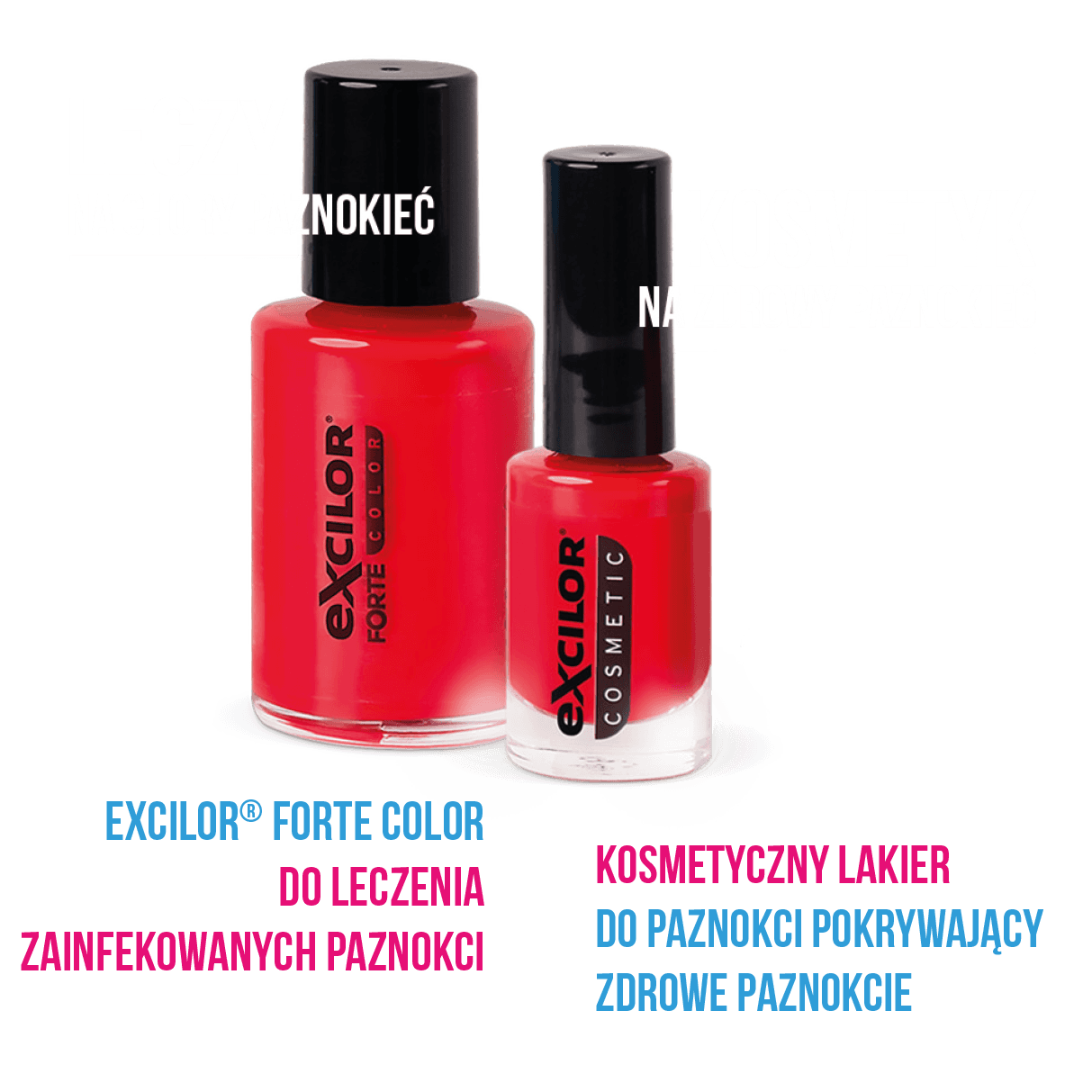 Excilor Forte Color to innowacyjny lakier, który nie tylko leczy grzybicę paznokci, ale także natychmiast maskuje nieestetyczne zmiany. Dzięki niemu zahamujesz rozwój infekcji, wspomożesz odrost zdrowych paznokci i zyskasz pewność siebie. Nasi klienci chwalą go za skuteczność, szybki efekt estetyczny i łatwość stosowania. Dołącz do zadowolonych użytkowników!